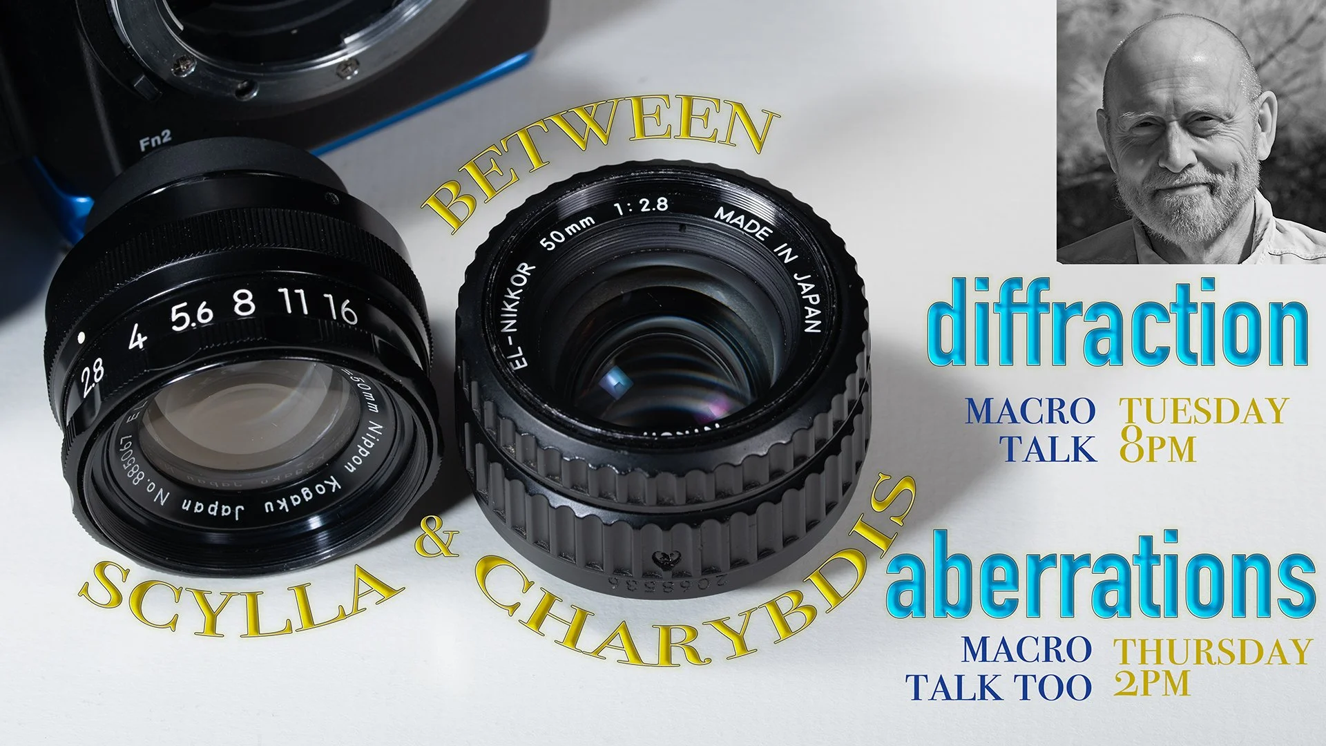 Thursday’s Macro Talk Too, at the usual time of 2PM, will look at the other crucial aspect of the lens, aberrations. One fundamental difference between diffraction softening and the quality issues caused by aberrations is that the former is result of physics and the latter is the result of lens design. Or put another way, an aperture closed down to f/22 will cause softening in even the best lenses, but if you want pictures that have no chromatic or geometric aberrations at all, just buy a 150mm Printing Nikkor and use it at 1:1. But for most of us, that is not an option, so I am going to talk about all the different types of aberration, how lens design can overcome them, and which ones are most important to address in macro photography. Here is a link to that Livestream… https://youtube.com/live/CGwhTV-7lV4?feature=share